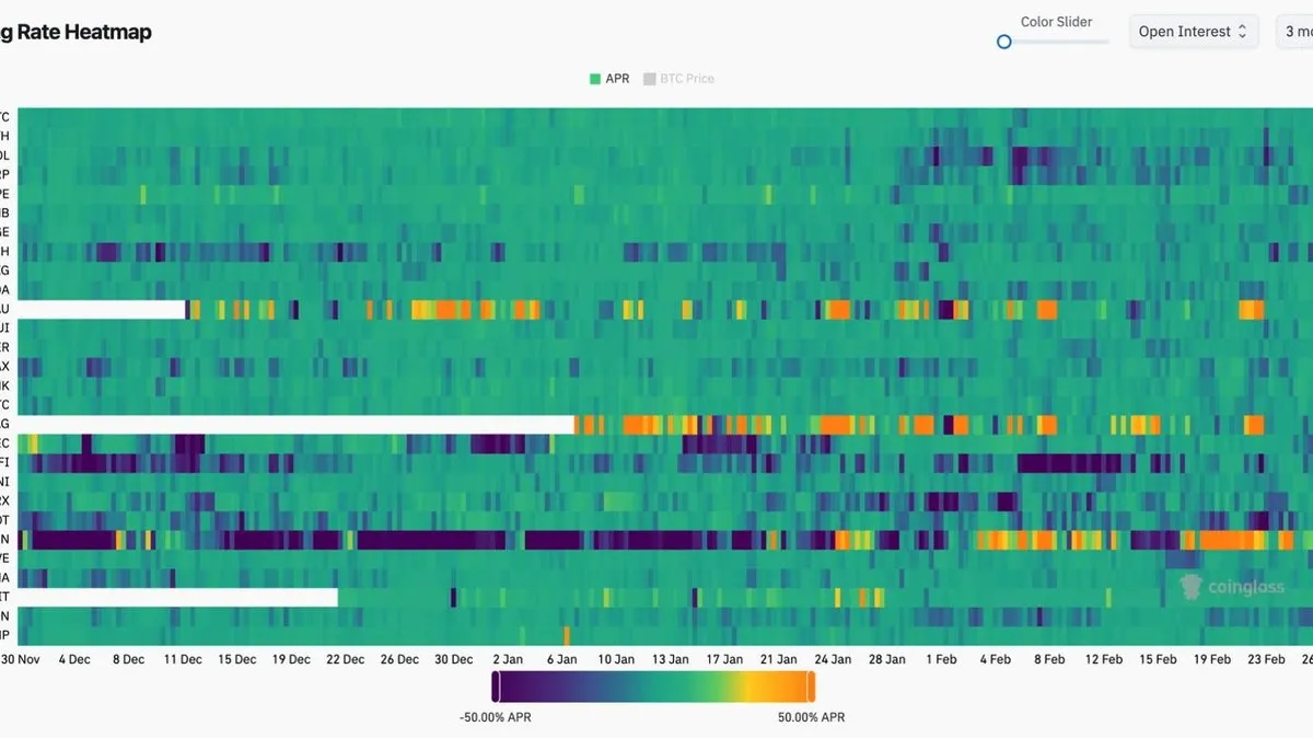 Search/NewsVideoPricesResearchConsensus 2026Data & IndicesSponsoredSearch/enMarketsShareShare this articleCopy linkX iconX (Twitter)LinkedInFacebookEmailBitcoin sets up potential short squeeze as funding plunges to -6%Negative funding rates, rising open interest and liquidations point to crowded positioning and heightened derivatives activity.By James Van Straten|Edited by Shaurya Malwa Feb 28, 2026, 11:00 a.m. Make us preferred on GoogleBTC Funding Rate (Coinglass)What to know: Perpetual funding rates dropped to -6%, matching the most negative level in three months, signaling aggressive short positioning as bitcoin briefly fell to $63,000.Coin margined open interest climbed to 687,000 BTC, indicating increased participation despite the price swing.Bitcoin is looking to reclaim $64,000 on possible short squeeze after earlier falling to as low as $63,000 following U.S. and Israeli strikes