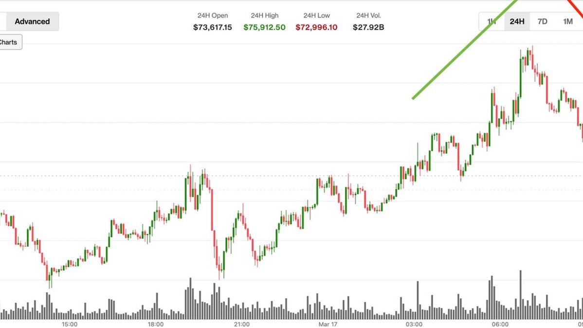 Bitcoin’s derivatives-led rally is already unraveling. Prices are back below $75,000