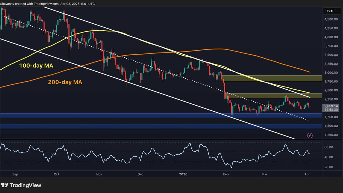 Курс ETH, балансирующий на грани психологической отметки в $2000, отражает не просто медвежье настроение, а системный кризис доверия. Каждое восстановление от уровня $1800 наталкивается на жесткое сопротивление, а структура рынка остается медвежьей. Цена застряла ниже ключевых скользящих средних, а зона $2300-$2400 превратилась в непреодолимый барьер.